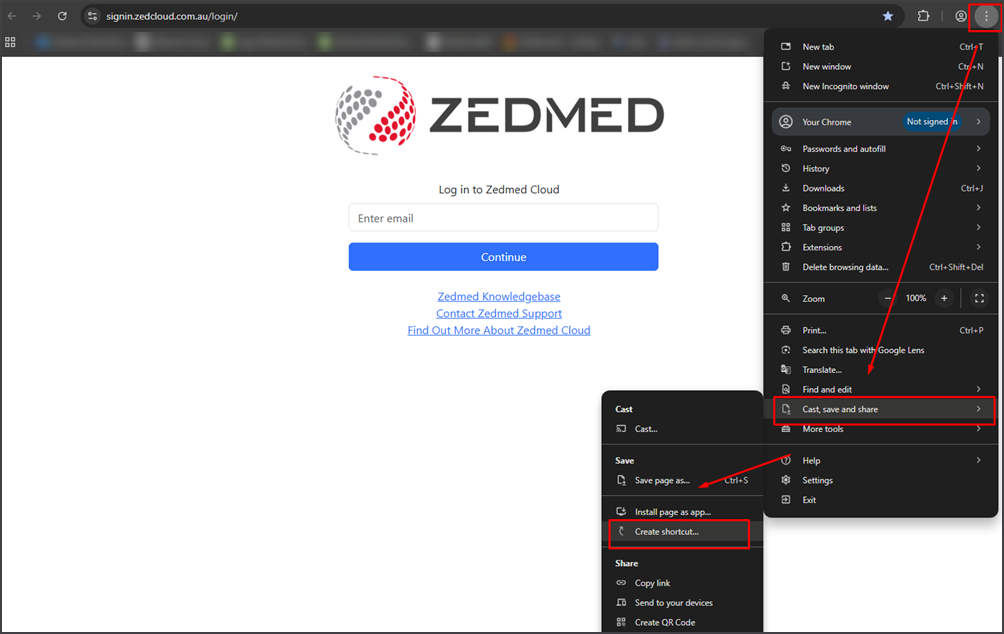 As an option to bookmarking your Zedmed Cloud, you can create a desktop shortcut.